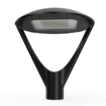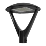 The Clio Post Top is a modern, architectural decorative fixture inspired by organic shapes, designed for high lumen output. It features a durable, corrosion-resistant cast aluminum housing with silicone gasketing for complete weather and insect protection. The light offers a high-performance optical range with T2, T3, T4, and T5 distributions to suit specific applications. It also includes surge protection to prevent damage from power spikes. The Clio Post Top allows for adjustable wattage (130W, 100W, 80W, 60W) and has a color temperature range of 3000K, 4000K, or 5000K. It is available in both standard and custom colors and comes with an industry-leading 10-year warranty. This lantern is ideal for parks, business complexes, and public spaces, providing a contemporary urban design.